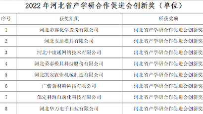 关于2022年河北省产学研合作促进会创新与促进奖获奖的公告